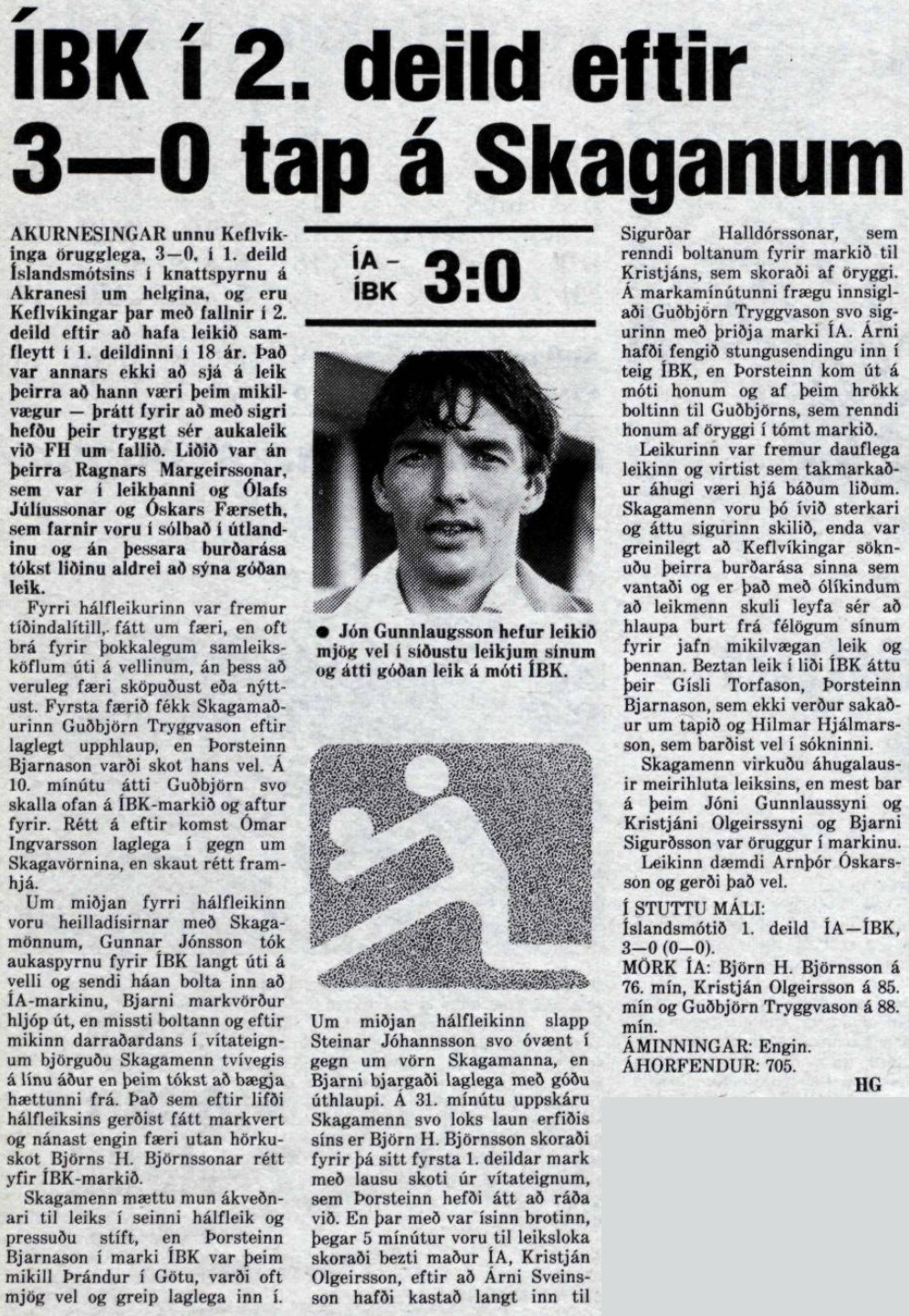 Jón Gunnlaugsson var leikmaður með stórt hjarta og geysilega sterkur varnarmaður. Hann var yfirburða skallamaður bæði í vörn og sókn. Í stórum leikjum þar sem illa gekk að skora komu oft stóru mörkin hans sem mörg eru eftirminnileg. Hans styrkleiki sem varnarmaður var hve góður hann var maður gegn manni og eins frábær í rennitæklingum sem stöðvuðu fjölmörg sóknartilbrigði andstæðingana. Jón var sterkur í leikmannahópnum, leiðtogi sem leiddi með góðu fordæmi, svo eftir var tekið. Hann þoldi ekki að tapa leikjum og alltaf tilbúinn að setja hausinn í hættuna.